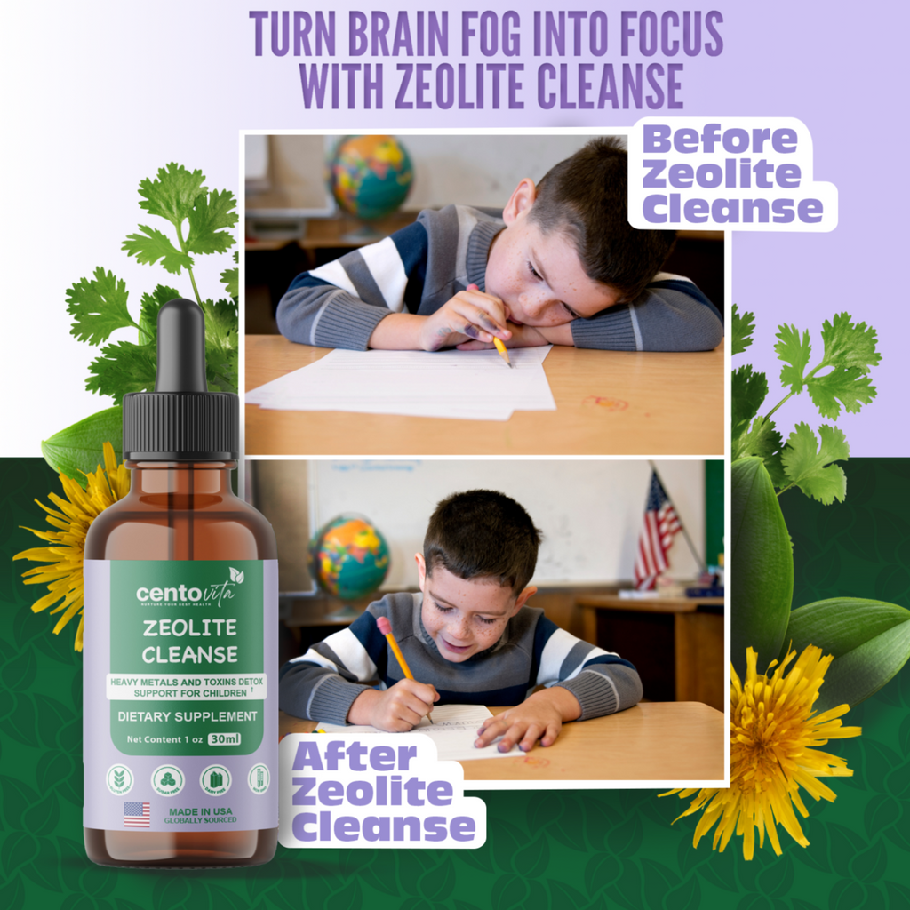 Zeolite Cleanse Drops by CentoVita International are a kid-friendly liquid supplement designed to support overall wellness in children aged 1 and up. This gentle, plant-based formula includes nutrient-rich botanicals like chlorella, cilantro, zeolite, milk thistle, dandelion root, and vitamin C—carefully selected to help support immune function, brain clarity, and daily balance.